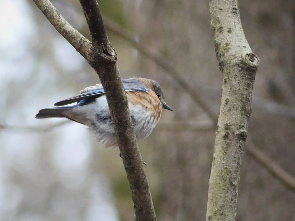 The rear view of the bluebird’s wonderful. I’d not thought about it, but I rarely see a view from behind. This one’s as attractive from the rear as from the side or the front. I know there are bluebirds in our state, but I’ve never seen one. The only ones I’ve seen were in Kansas and Missouri, which is getting up toward your territory.