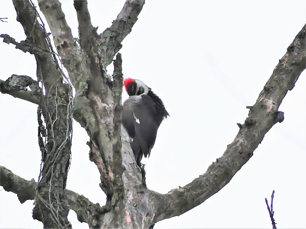 As temperatures eased a bit yesterday, a male Pileated woodpecker began his loud early spring courtship drumming high in a snag. Near him a young female with her not quite grown out crest was preening. Spring is just weeks away.