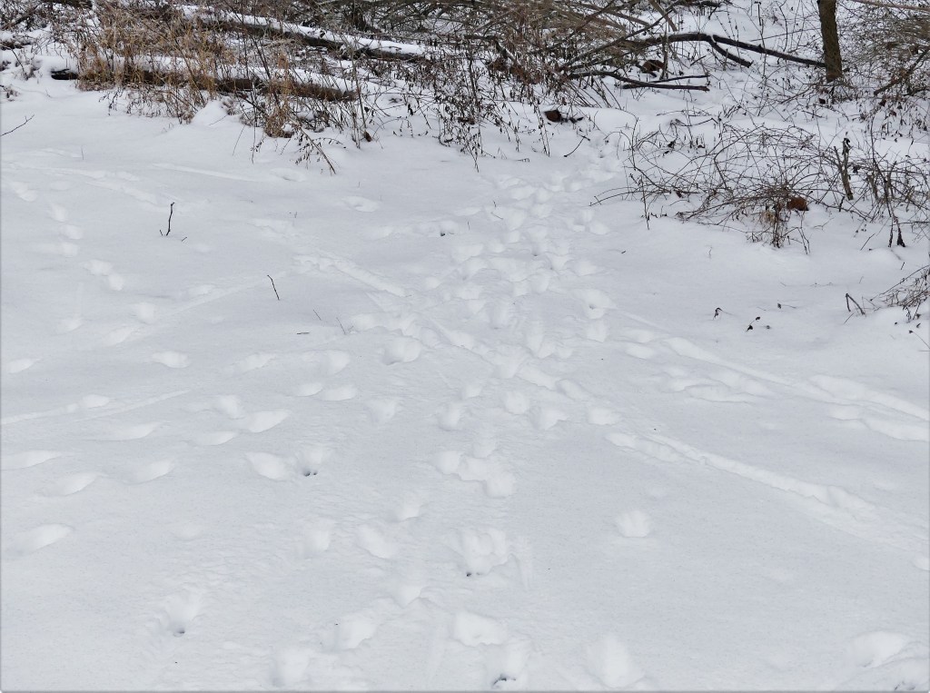Snow followed the freezing rain, exposing the movements of deer and coyotes in particular. Deer trails are everywhere, highlighting the influence this many large herbivores are having on such a small fragment of forest.